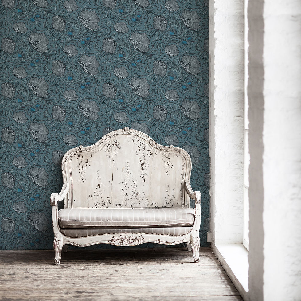 Little Greene - Poppy Trail - Air Force Blue - Wallpaper